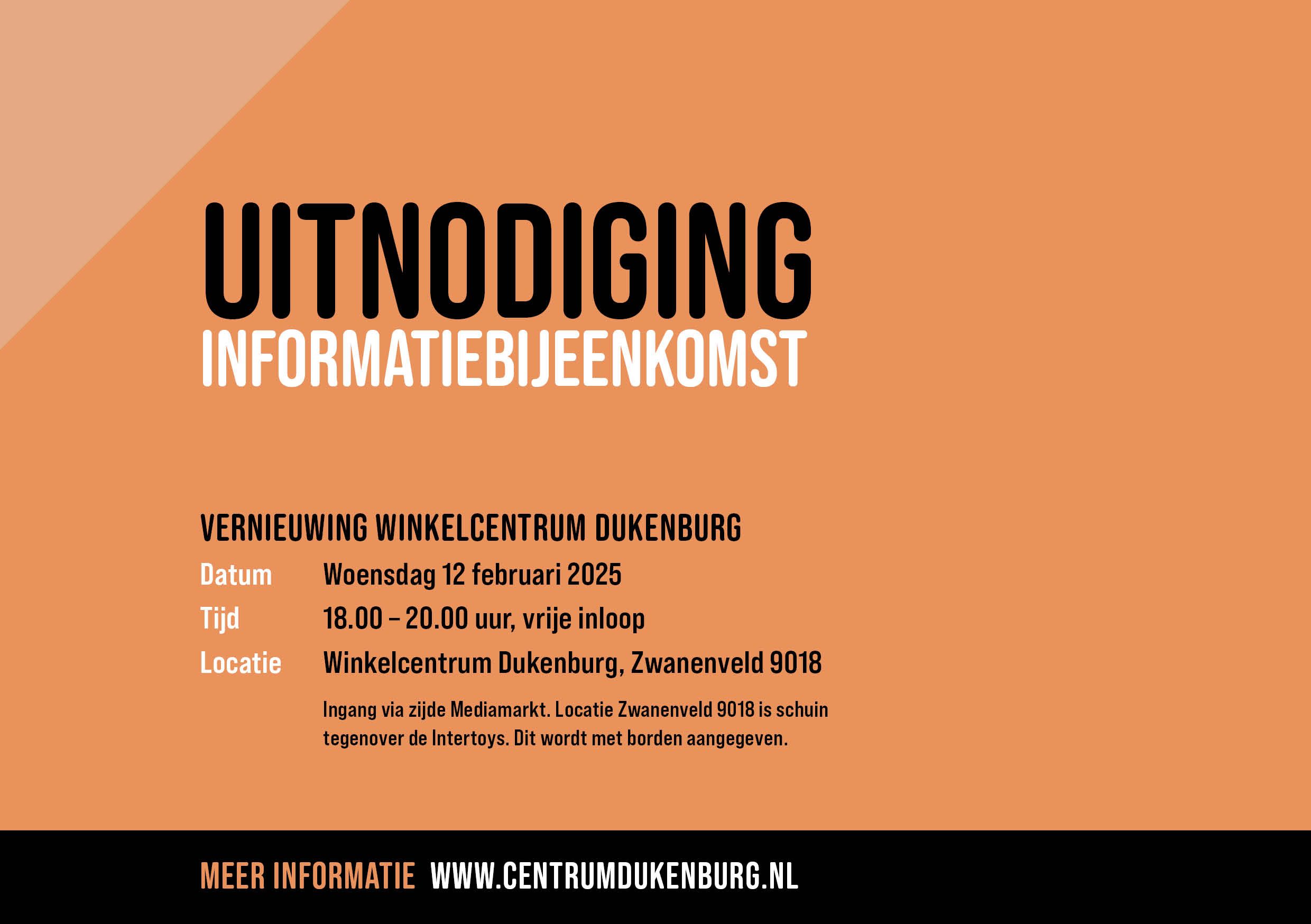 Winkelcentrum Dukenburg en de omgeving zijn toe aan vernieuwing. Het wordt een veelzijdig gebied met ruimte om te winkelen, wonen en ontspannen. Er komen ongeveer 500 nieuwe woningen, een extra supermarkt, een moderne bibliotheek en meer groen. De openbare ruimte en de aansluiting op het openbaar vervoer worden verbeterd.