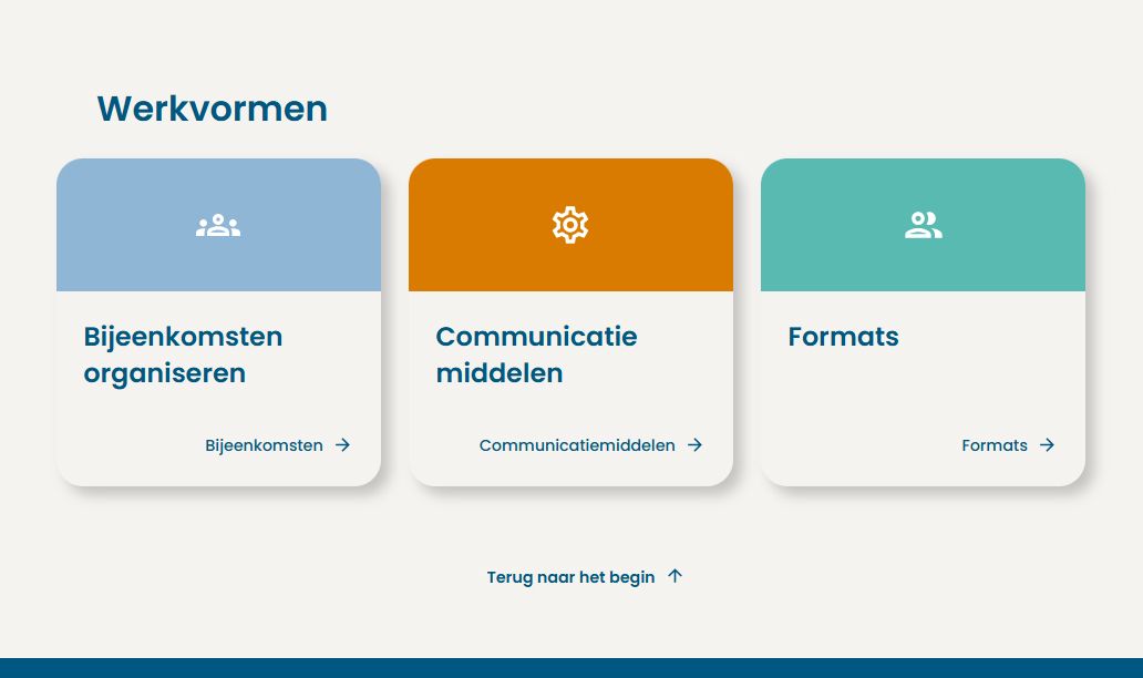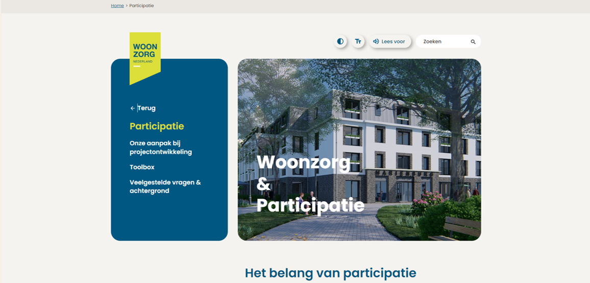 Aan de hand van workshops met diverse medewerkers gingen we in gesprek over participatie binnen de organisatie. Prikkelende voorbeelden toonden ‘hoe het ook kan’. We gingen aan de slag met cases uit de organisatie: wat ging goed, wat kan beter. Op deze manier leerden we de organisatie goed kennen en konden we een participatehandboek op maat maken. Online, zodat het overal benaderbaar is en makkelijk te actualiseren. Vol handige formats, tips en voorbeelden, afgestemd op de dagelijkse praktijk van Woonzorg Nederland.